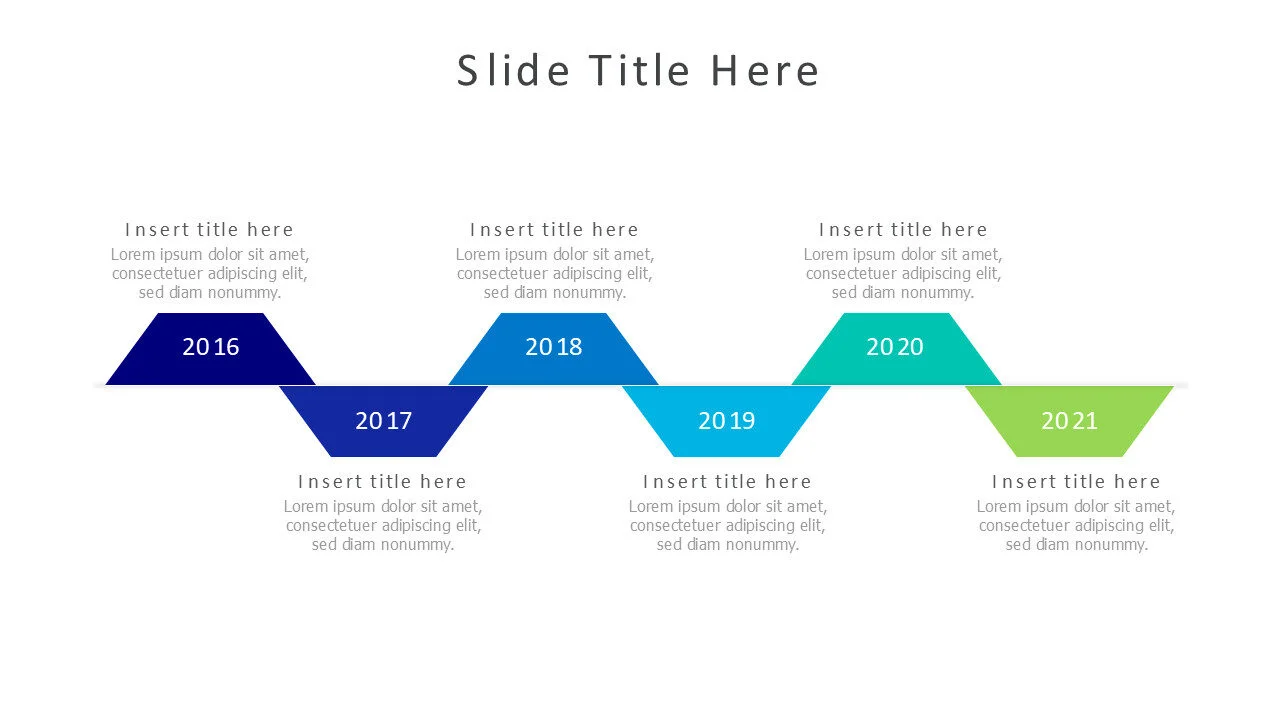 6 points timeline infographic template for structured presentation of workflows, phases, or historical events over time.