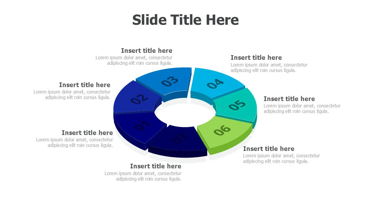 Infographic templates for 7-point 3D round infographics to show sequential data.
