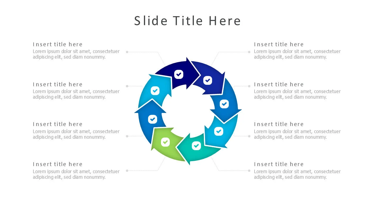 8-Stage Arrow Circular Infographic. Octagonal layout with circular arrows for continuous systems.