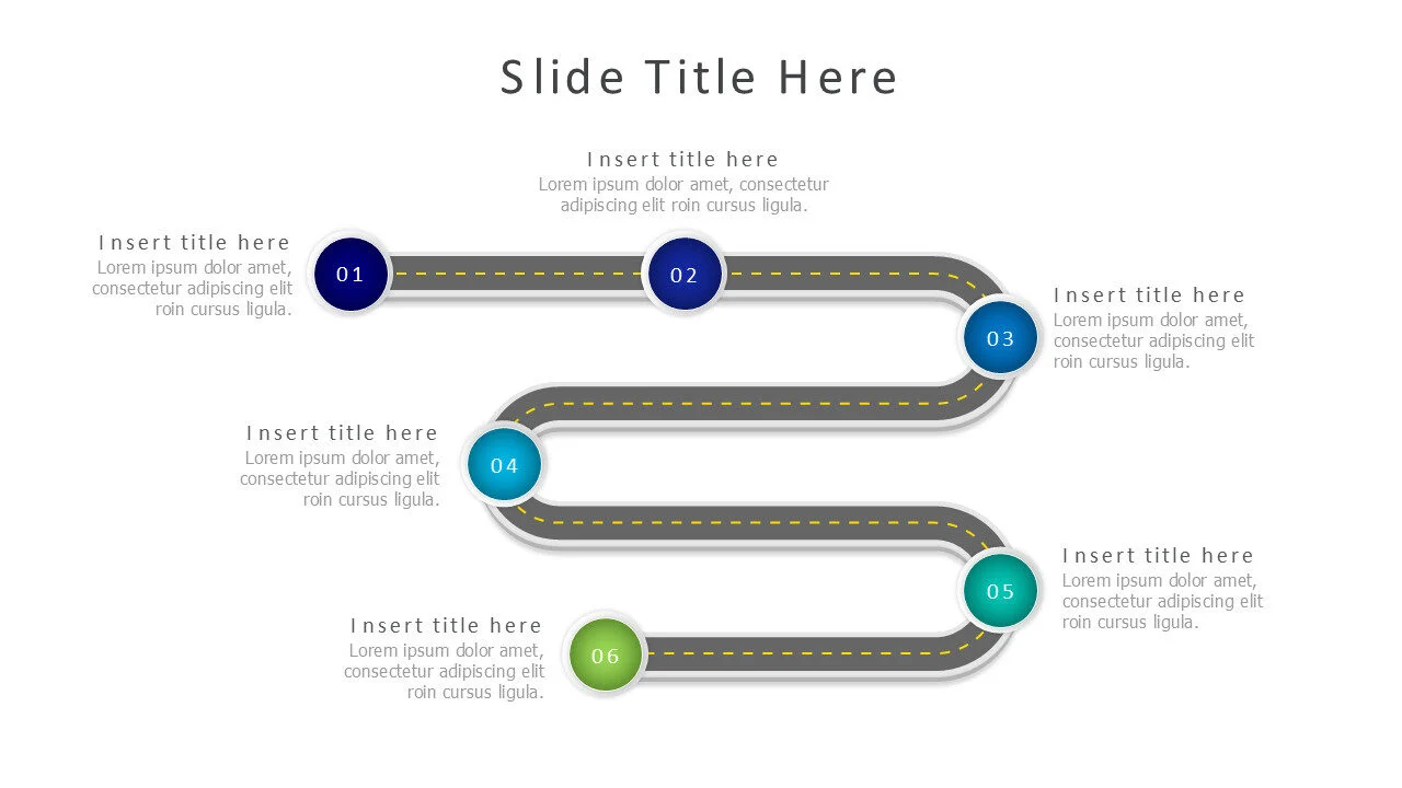 6-Point Roadmap Infographic. A strategic visual to plan and communicate six key milestones, phases, or objectives along a timeline.